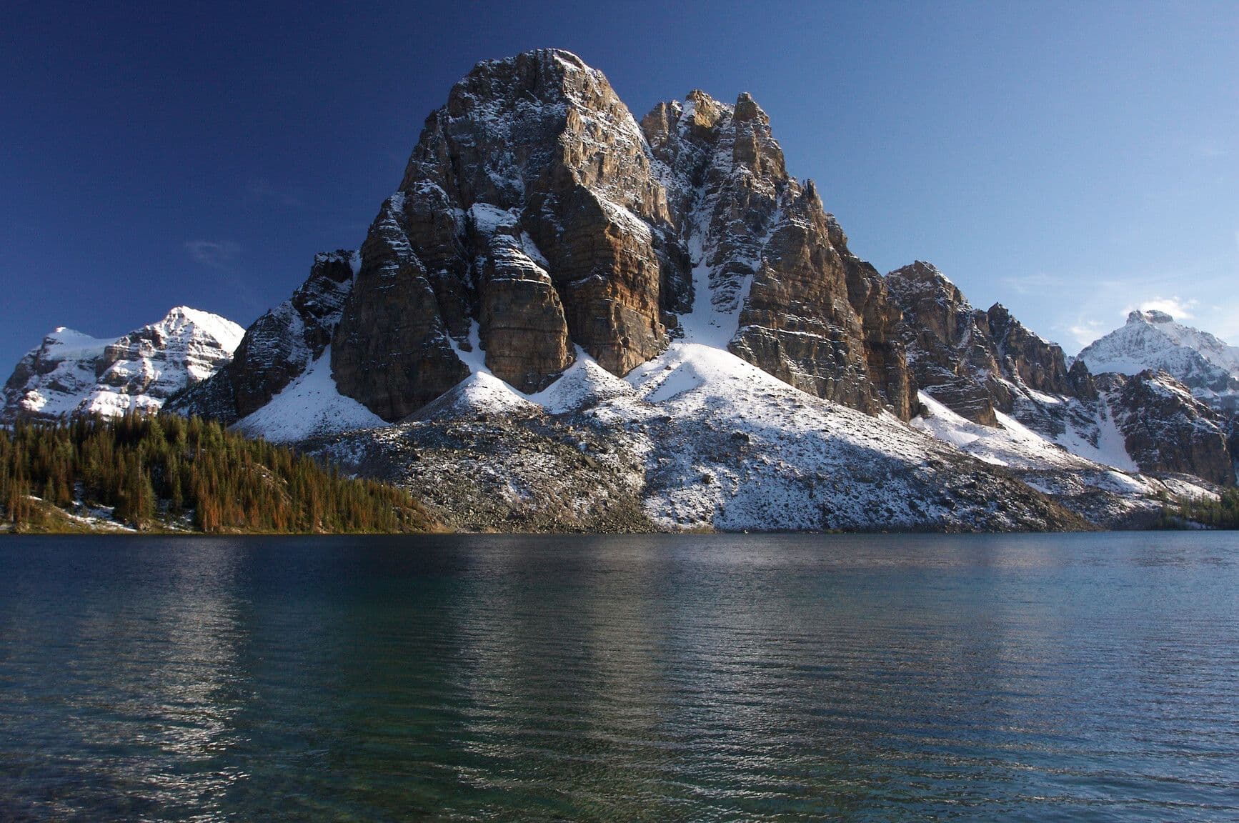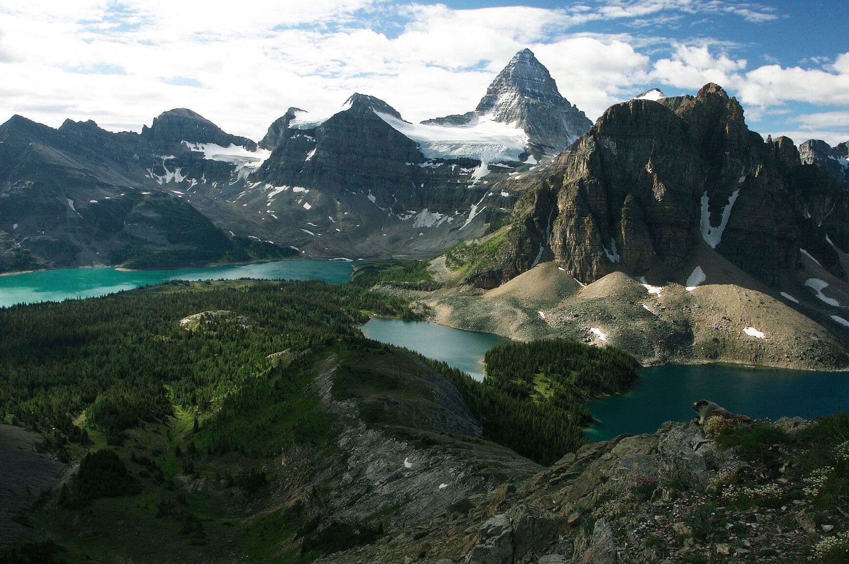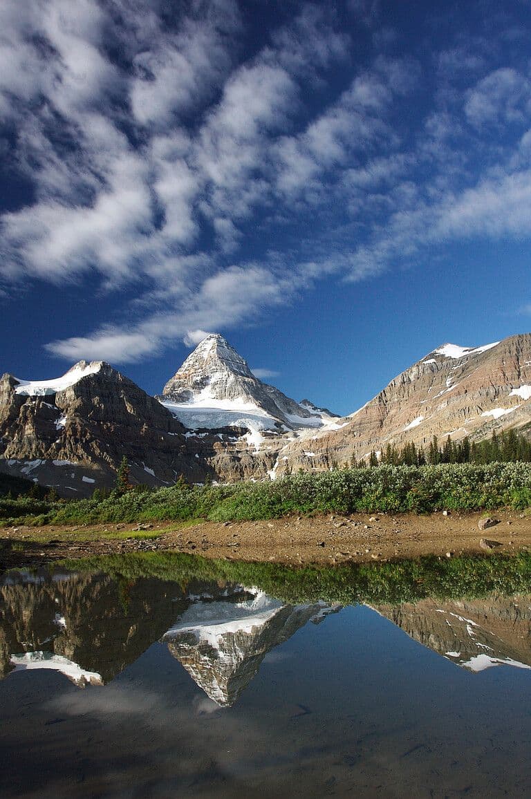 Fireweed bloom in Mount Assiniboine Park. A vibrant field of fireweed frames Lake Magog, with Mount Assiniboine, Mount Magog, and Sunburst Peak rising beyond. Glacial remnants and alpine light complete this serene mountain scene at sunset.1 / 10Mount Assiniboine Park