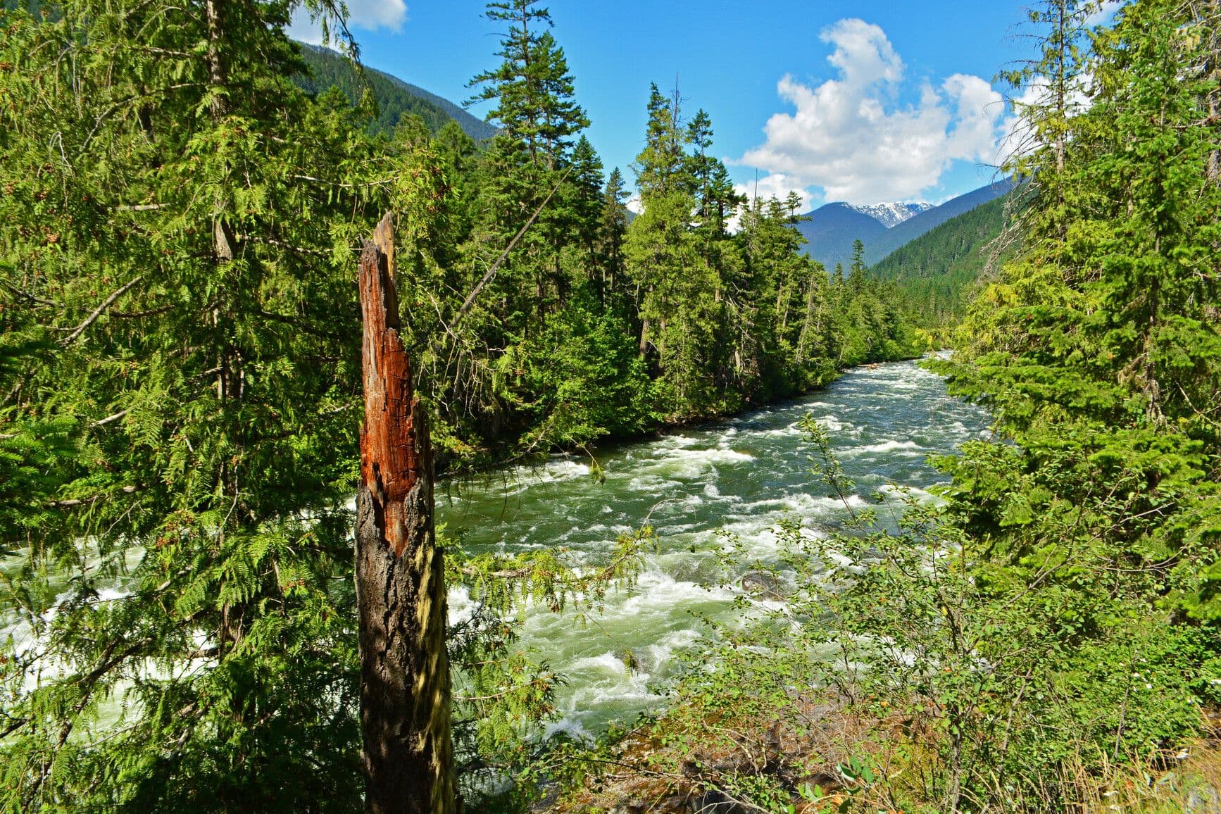Nahatlatch Park is characterized by scenic mountain peaks and glaciers, old growth forests, and a unique lake and river system.