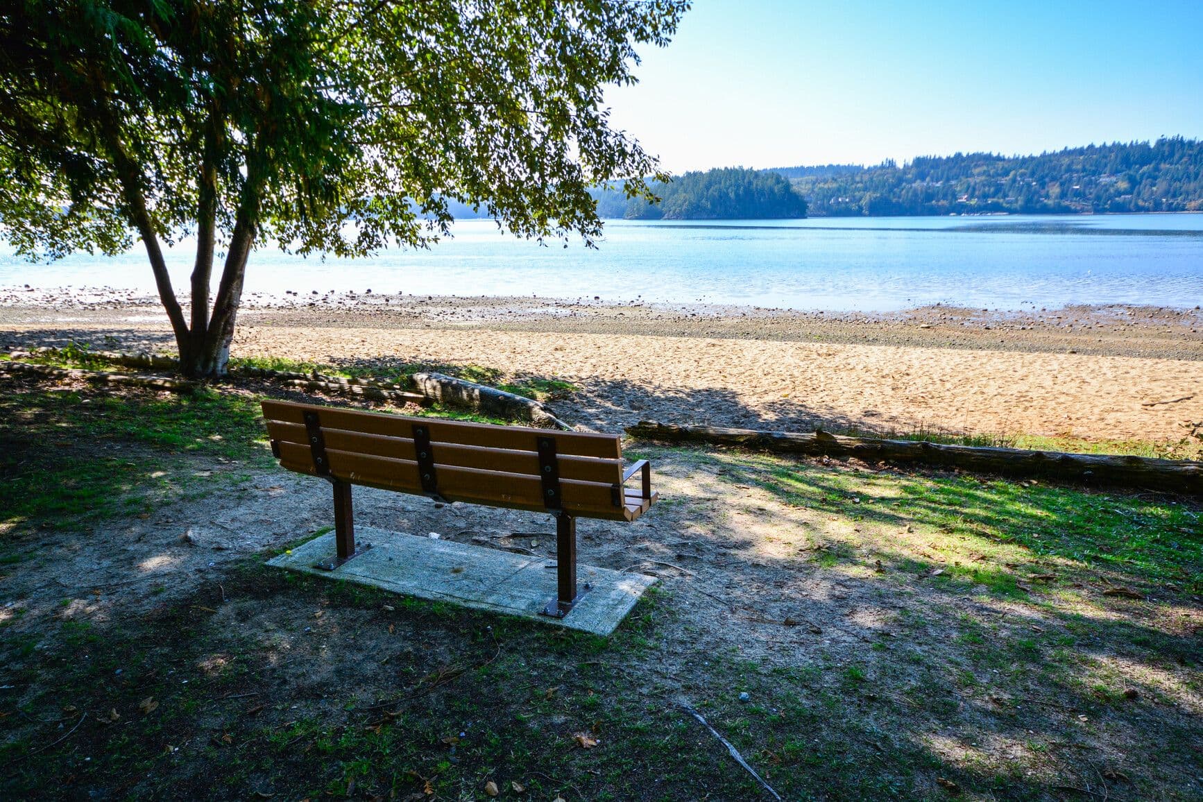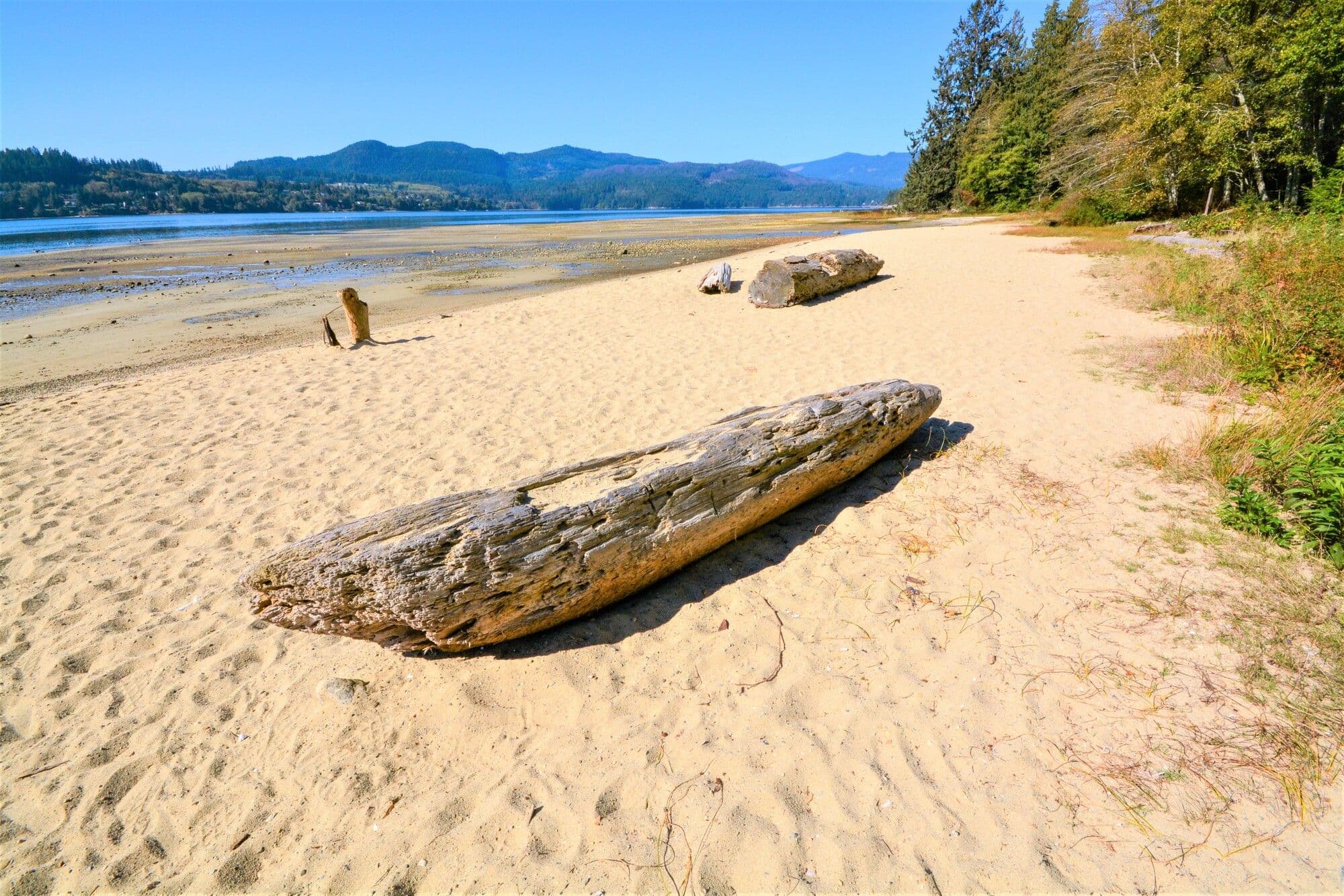 A rustic log picnic shelter at Porpoise Bay Park, offering a cosy retreat from the elements.1 / 10Porpoise Bay Park