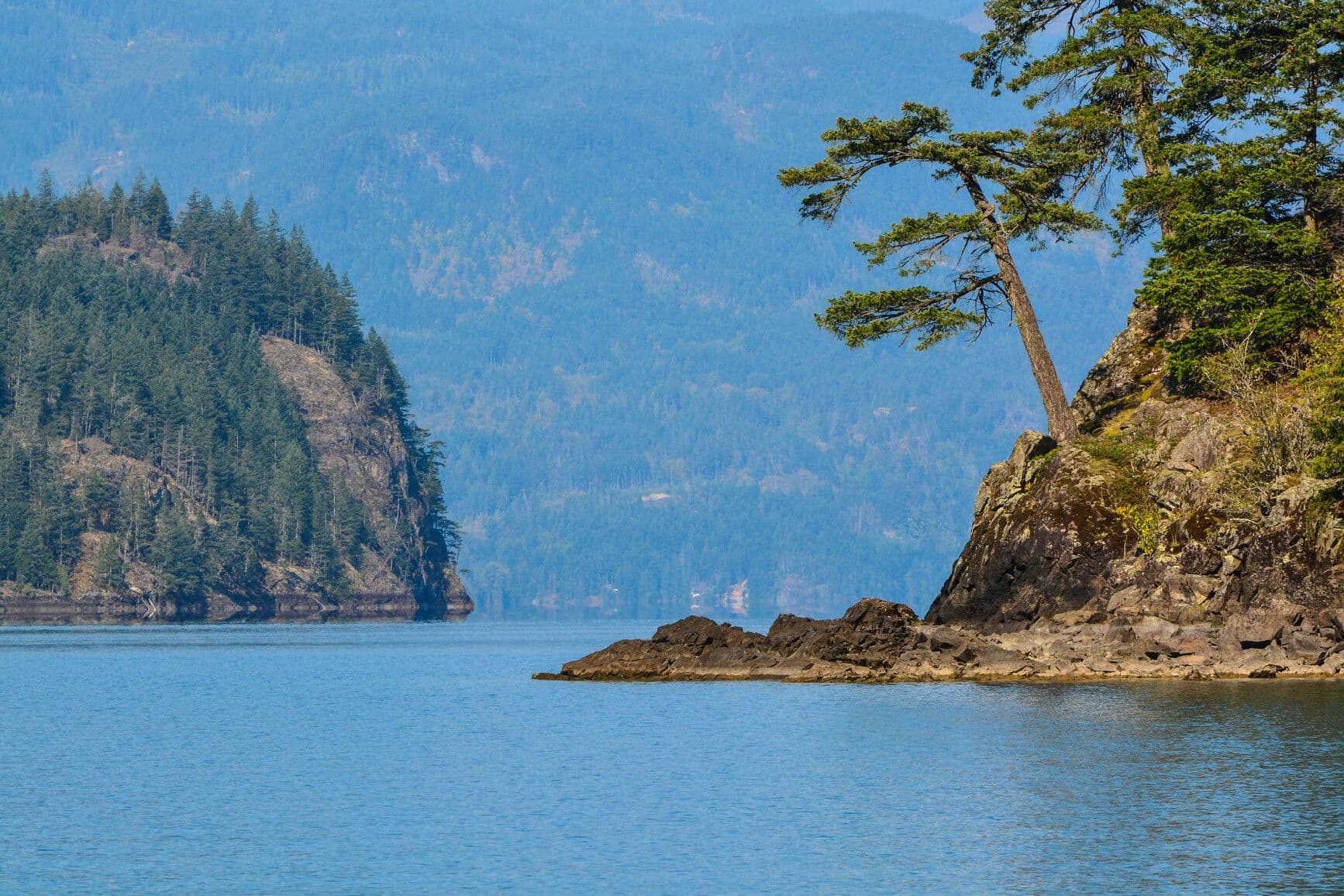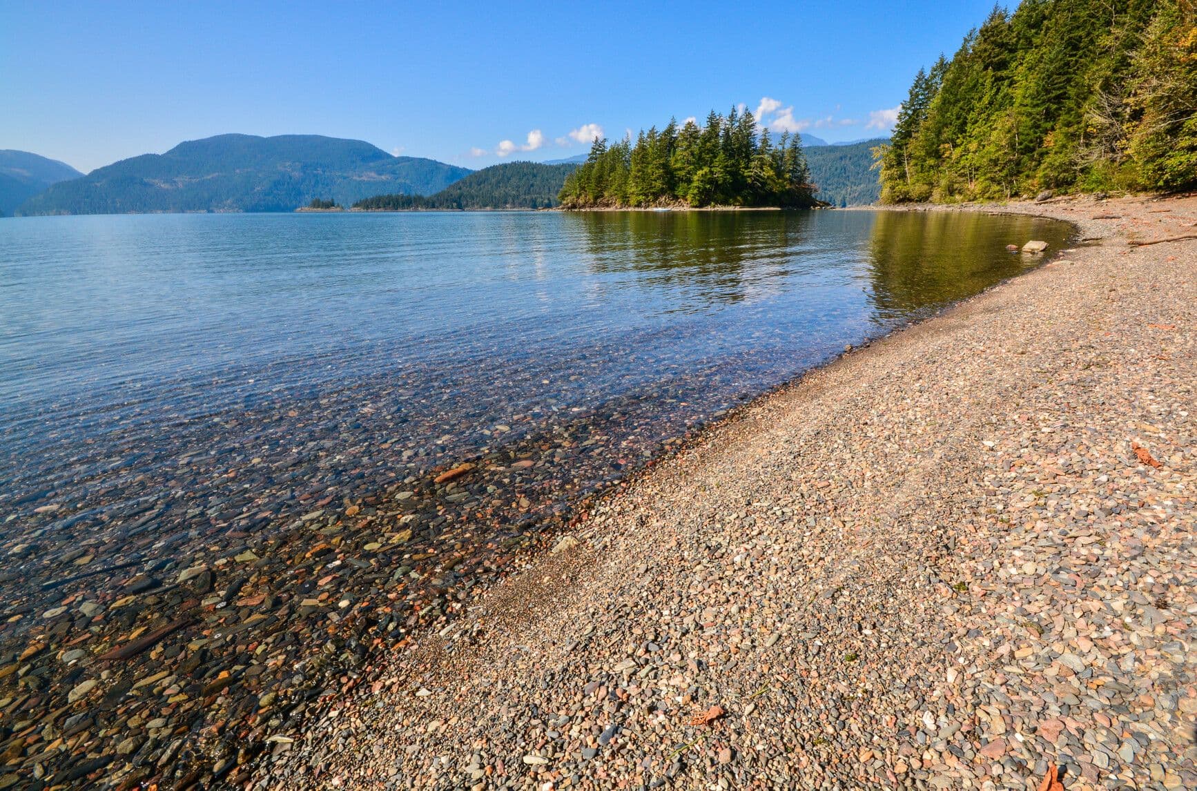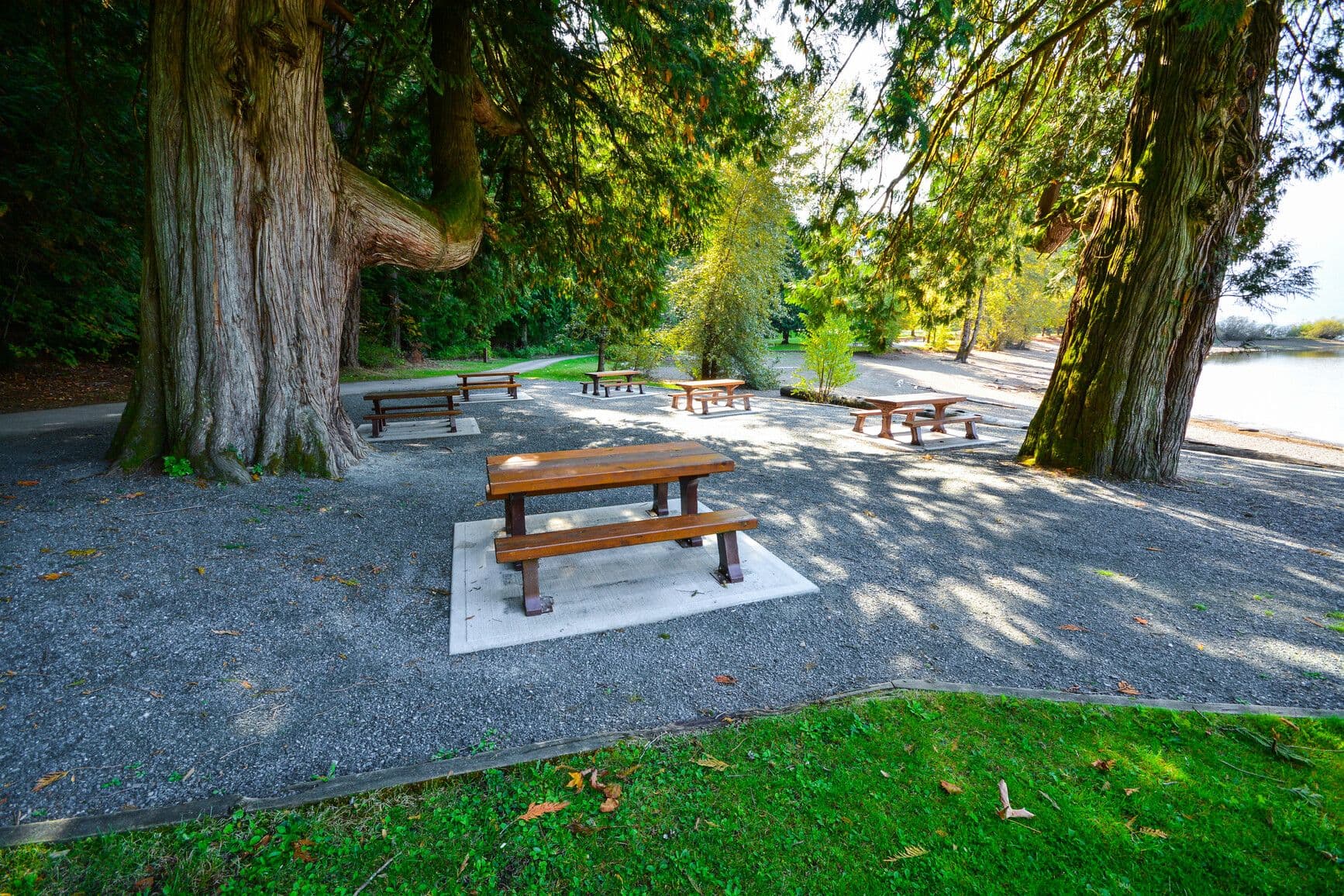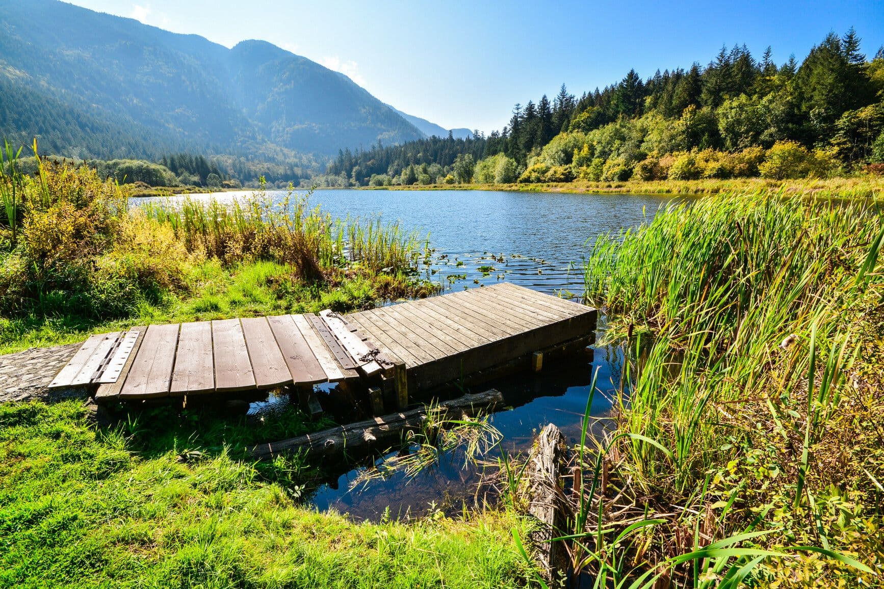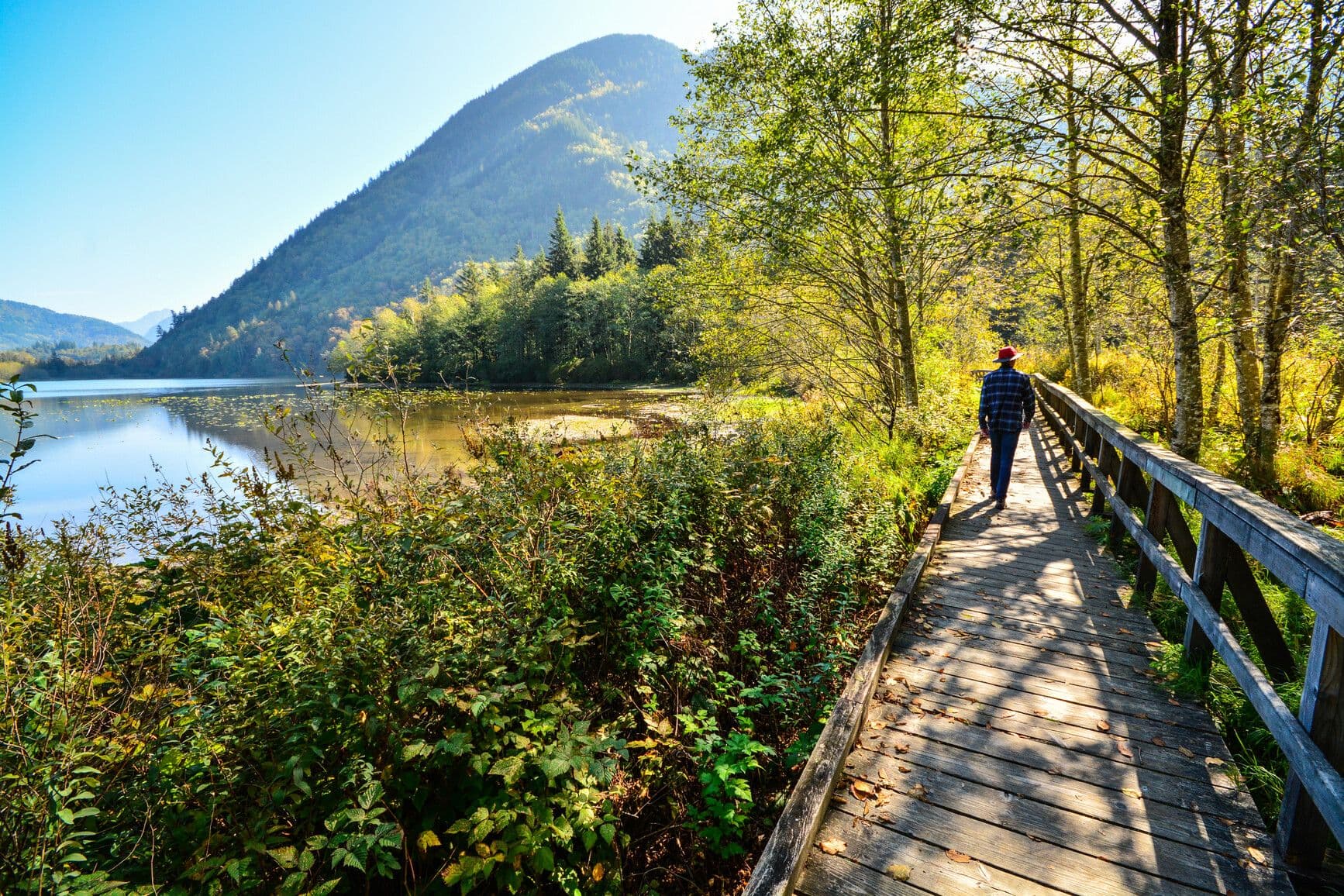 Autumn leaves rest in a stream below cascading falls in the dense forest. Sasquatch Park.1 / 10Sasquatch Park