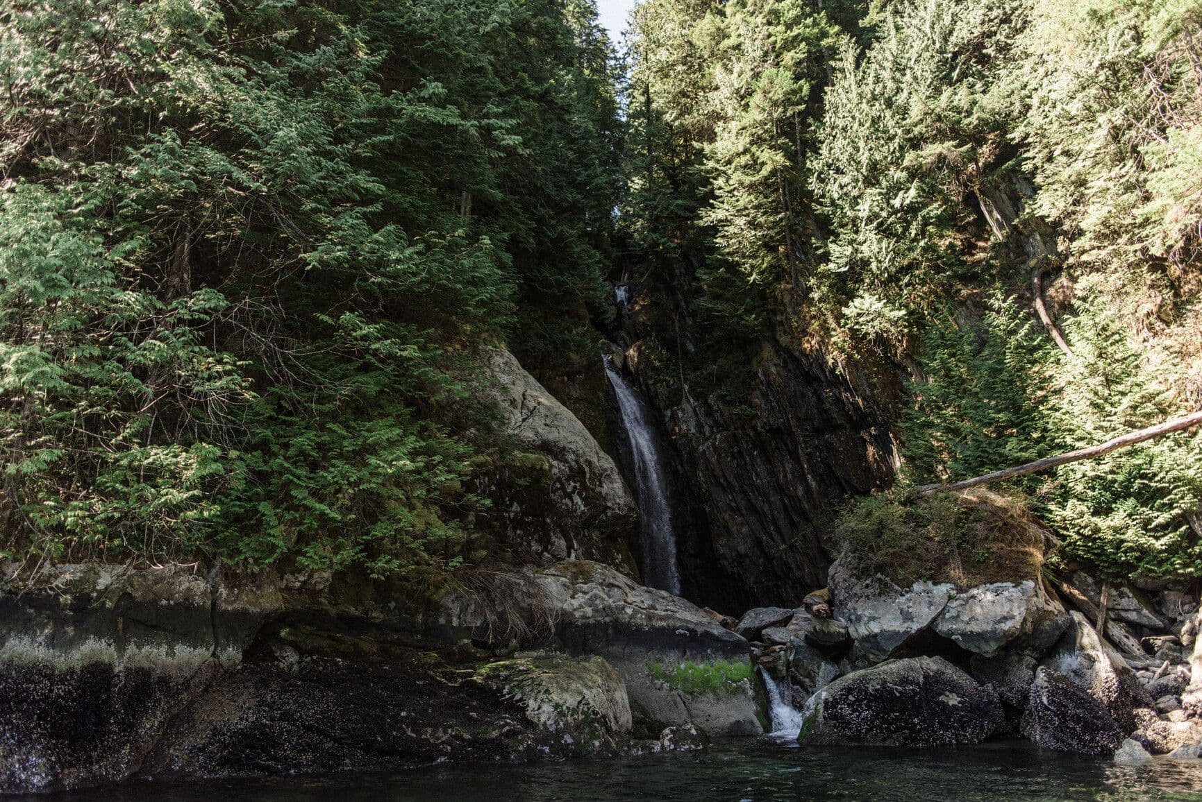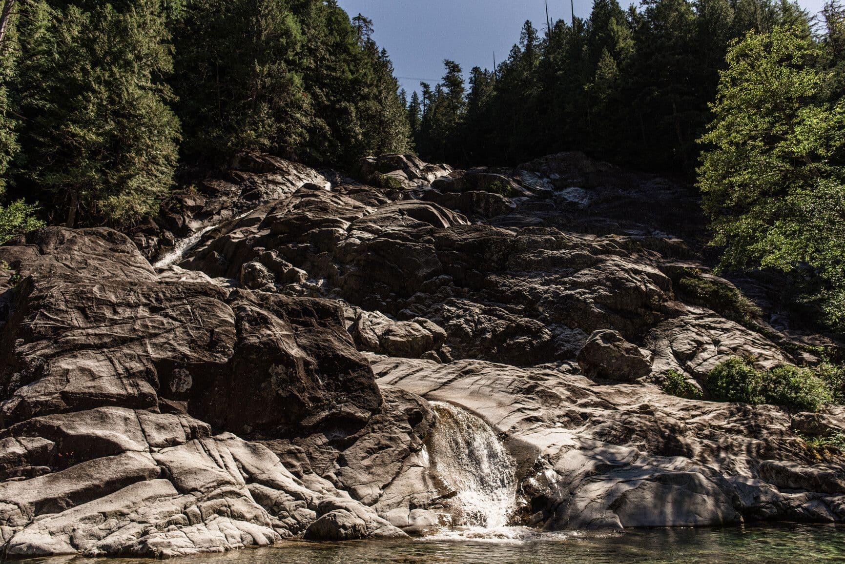 This conservation park protects the shores of Indian Arm, an 18 km fjord that extends north from Burrard Inlet in Vancouver. The park area was once heavily glaciated, leaving behind a spectacular landscape featuring rugged, forested mountains, several alpine lakes, and numerous creeks. There are waterfalls, including Silver Falls and the 50 metres high Granite Falls. The park also includes Racoon and Twin Islands, both characterized by sparse vegetation, open cover, and exposed rocky ledges.