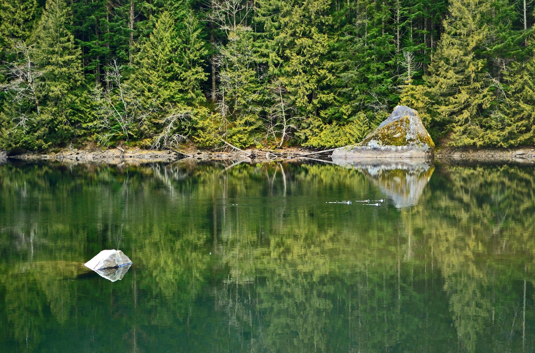 Mountains and forests surround the lake, reflecting on its still surface at Silver Lake Park1 / 9Silver Lake Park