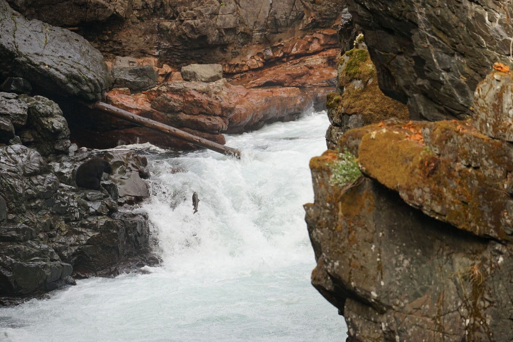 One of the park’s main attractions is the annual run of thousands of Pacific salmon circling in the pool below Stamp Falls before ascending the fish ladders on their way to spawning beds. Lookout points along the river offer excellent views of the salmon fighting their way up the falls and fish ladders. This natural phenomenon occurs every year, starting in late August with sockeye and continuing with coho and chinook right into December.